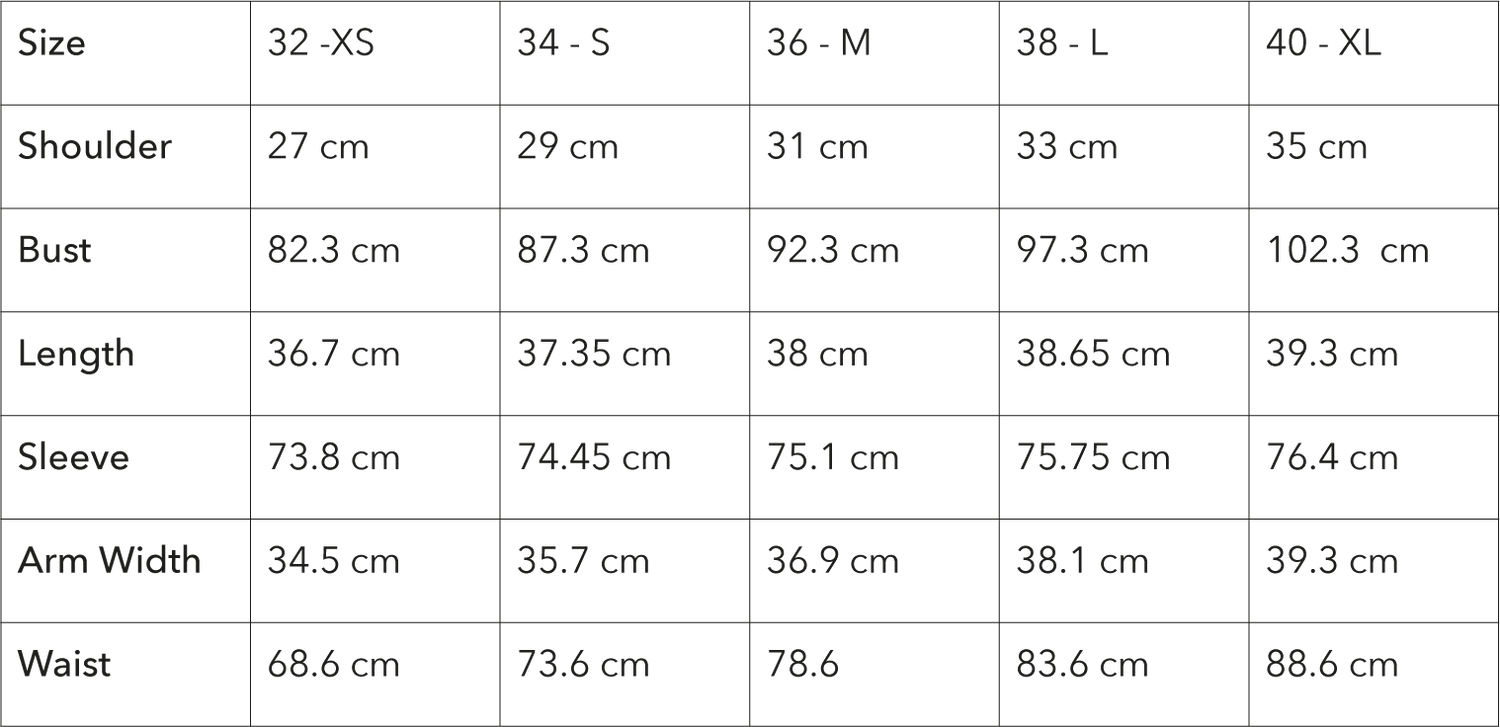 Please note that the oksa fabric does not have any stretch so bust area may fit tightly. Follow your bust measurements.